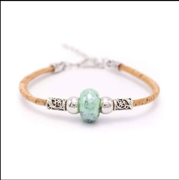 Natuurlijke kurk met Bloem kralen armband voor vrouwen natuurlijke Vintage handgemaakte vegan armband.