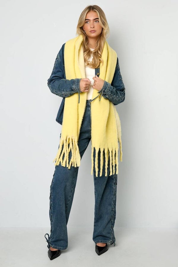 De sjaal is lekker groot en kan dus heerlijk om je heen gewikkeld worden.