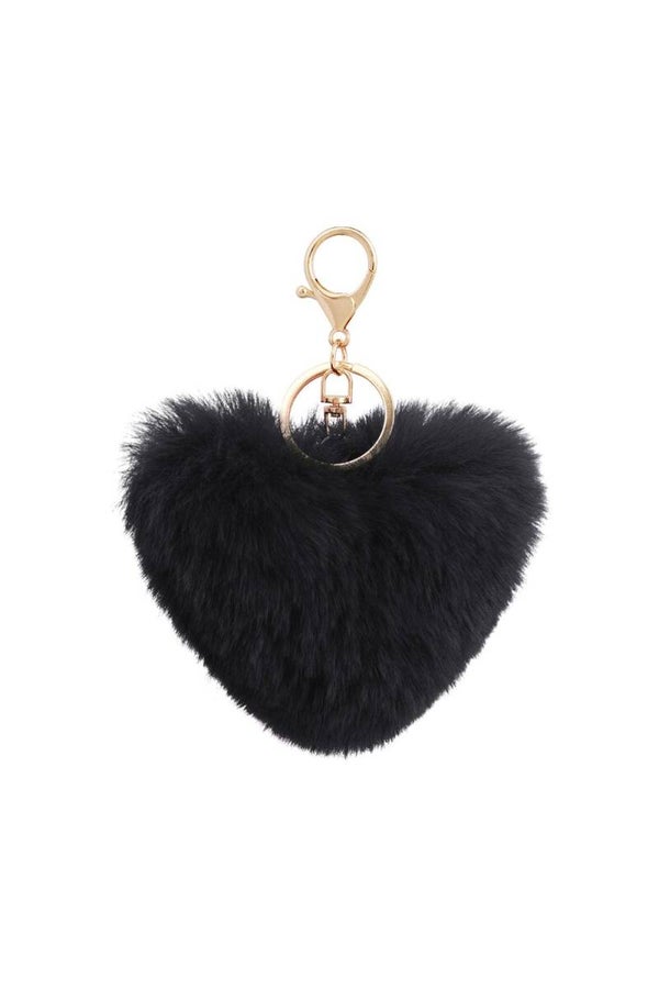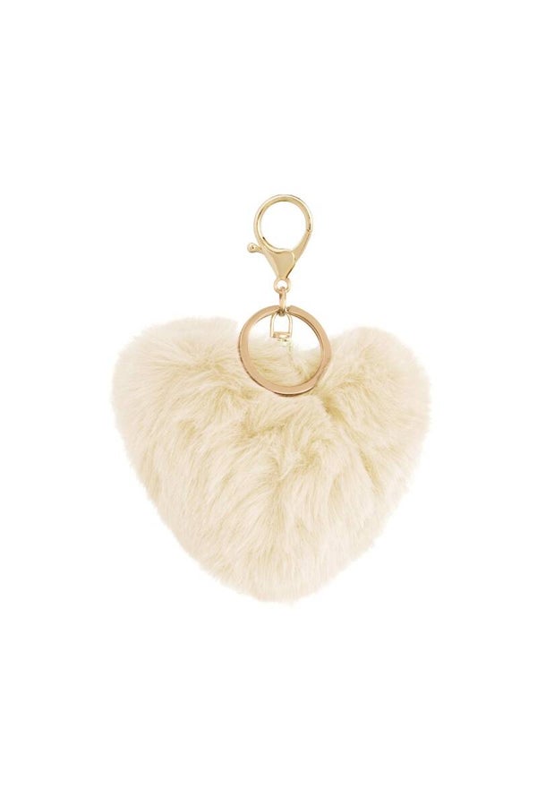 Fluffy tas / sleutel accessoire in hartvorm, gebroken wit
