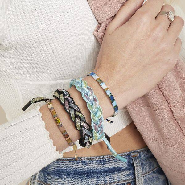 Gevlochten armband met verstelbaar bandje. Beschikbaar in verschillende kleuren, leuk om te combineren.