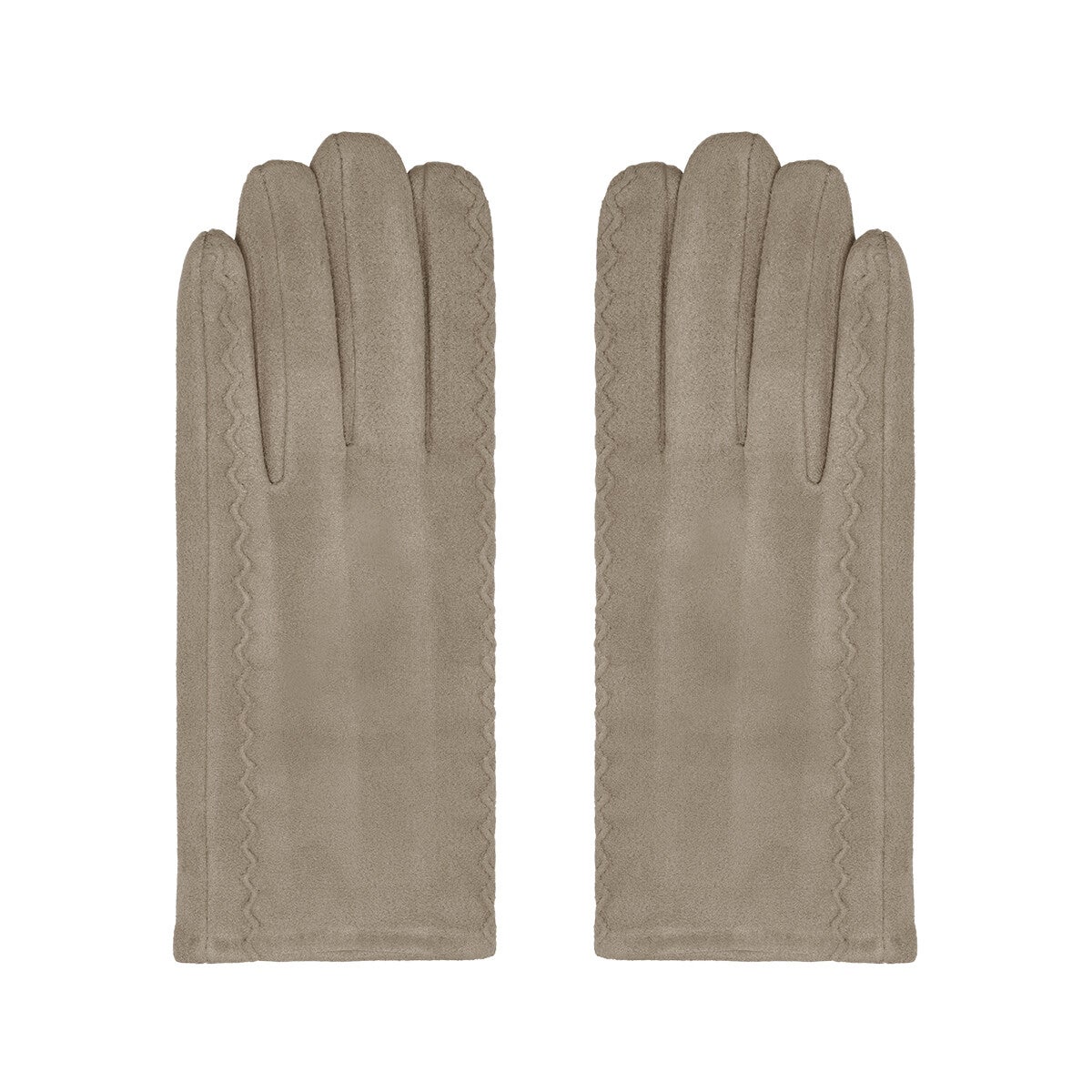 Deze beige handschoenen moet je hebben in je garderobe! Deze elegante handschoenen hebben een zachte stof en zijn versierd met de golvende stiksels.